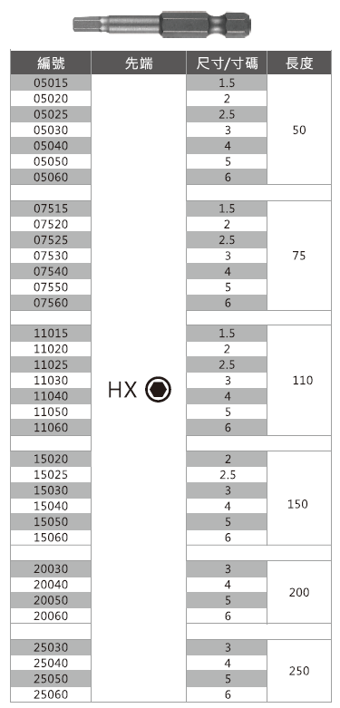 6.35㎜ 1/4 單頭起子型 (六角起子頭)