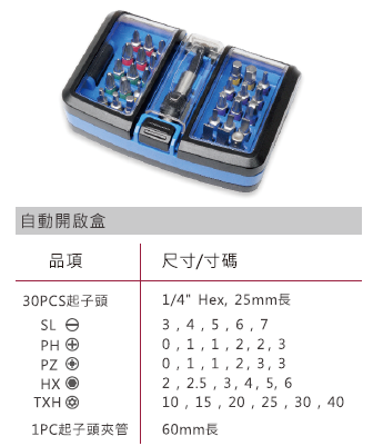 6.35㎜ 1/4 起子頭工具組 (自動開啟盒)