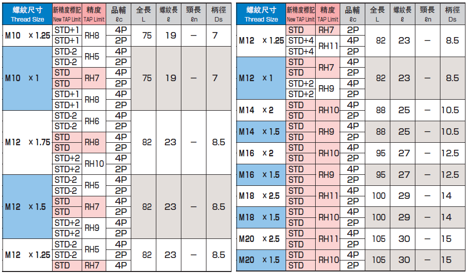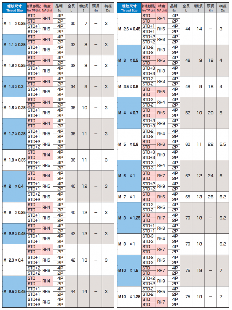 鋼鐵用無屑絲攻 M1*0.25 ~ M20*1.5