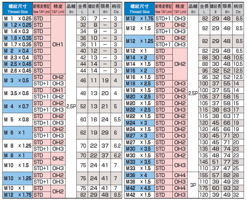 氧化處理螺旋絲攻 M1*0.25 ~ M42*1.5