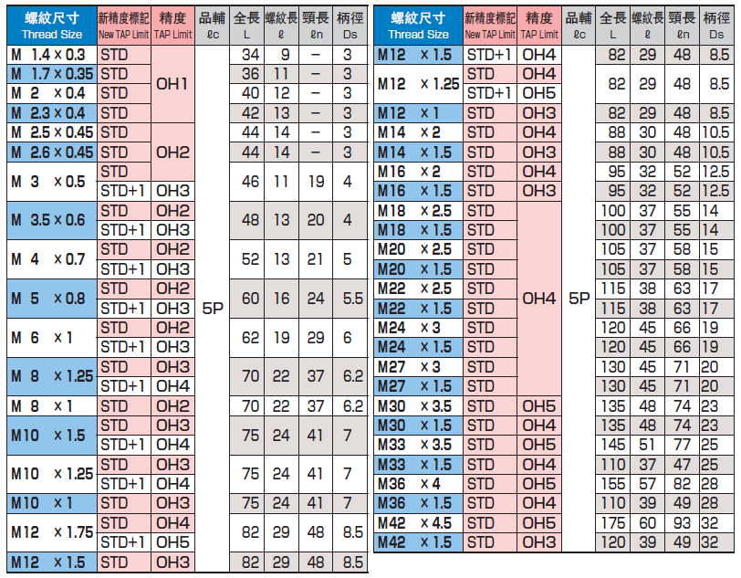 氧化處理先端絲攻 M1.4*0.3 ~ M42*1.5