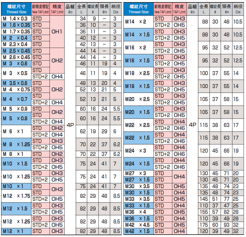 白鐵先端絲攻 M1.4*0.3 ~ M42*1.5
