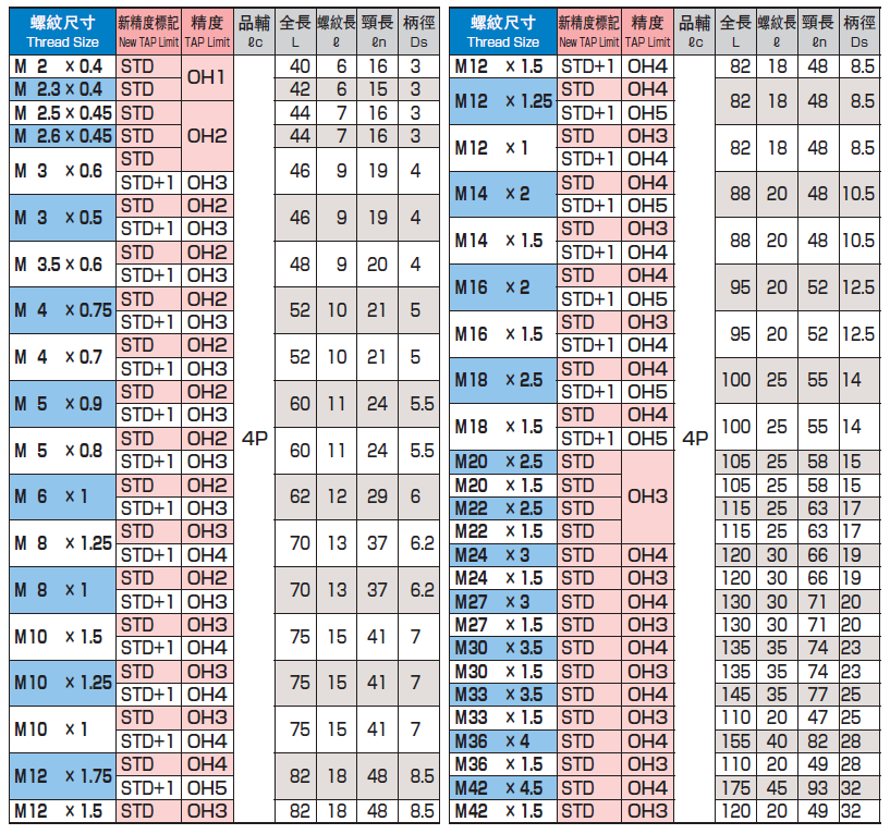 深孔用先端絲攻 M2*0.4 ~ M42*1.5