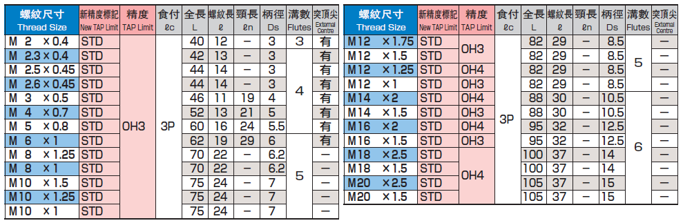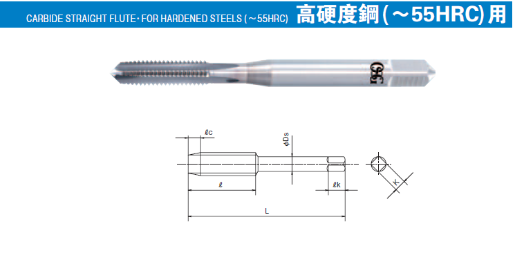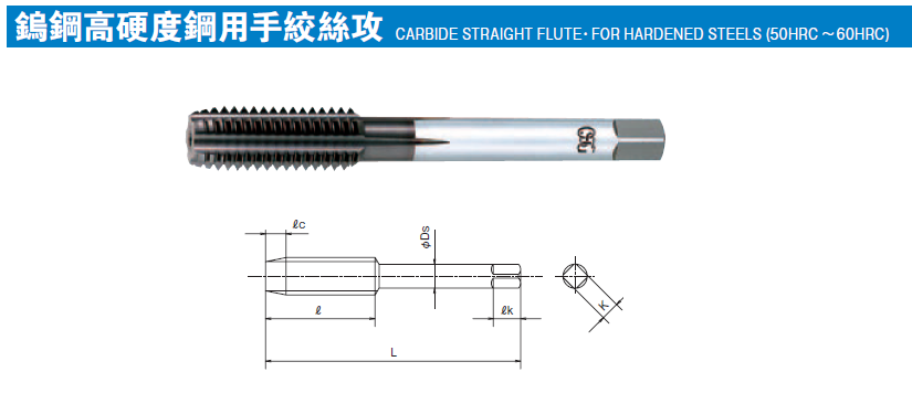 高硬度鋼用鎢鋼手絞絲攻 ~55HRC用 M3*0.5 ~ M12*1.7 50HRC ~ 60HRC M2*0.4 ~ M20*1.5