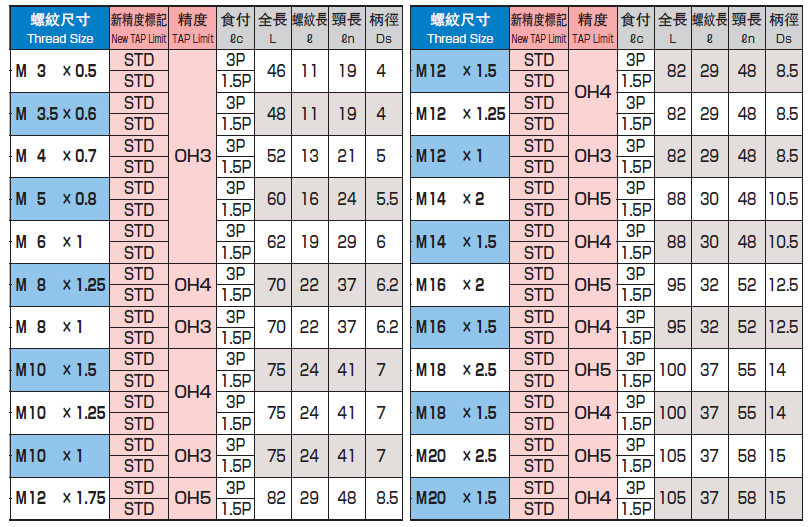 鑄鐵用手絞絲攻 M3*0.5 ~ M20*1.5