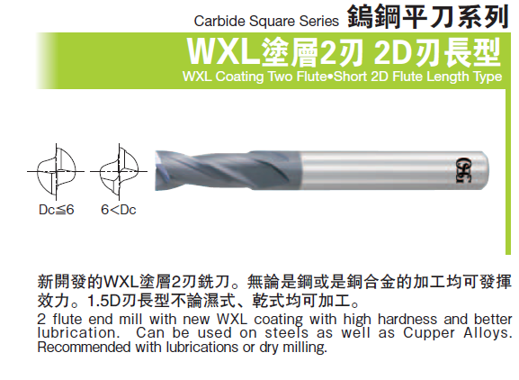 二刃鎢鋼銑刀-2D刃長型