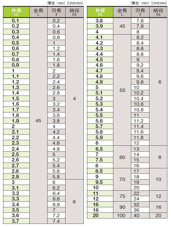 二刃鎢鋼銑刀-2D刃長型 M0.1 ~ M20