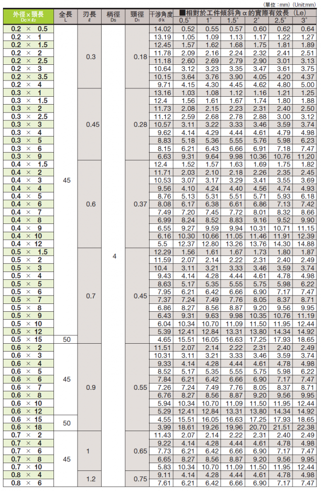二刃長頸短刃鎢鋼銑刀-深溝加工型 M0.2*0.5 ~ M5*60