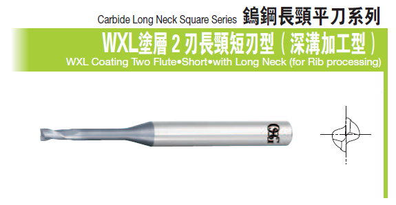 二刃長頸短刃鎢鋼銑刀-深溝加工型