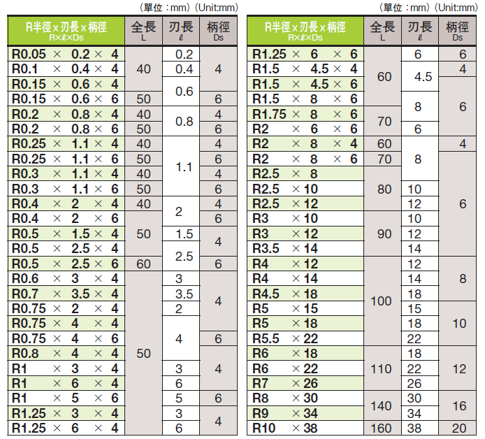 二刃鎢鋼球刀 R0.05*0.2*4 ~ R10*38