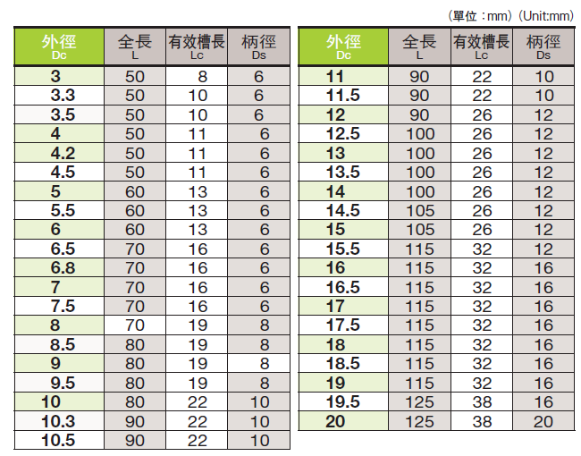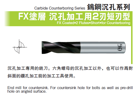 二刃短刃型鎢鋼銑刀-沉孔加工用 M3 ~ M20