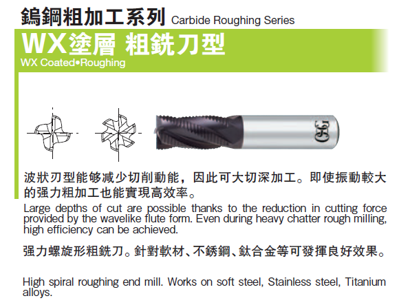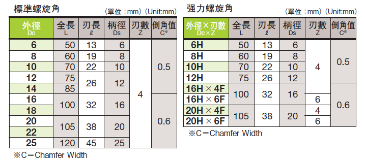鎢鋼粗銑刀 標準螺旋角 M6 ~ M25 強力螺旋角 6H ~ 20H*6F
