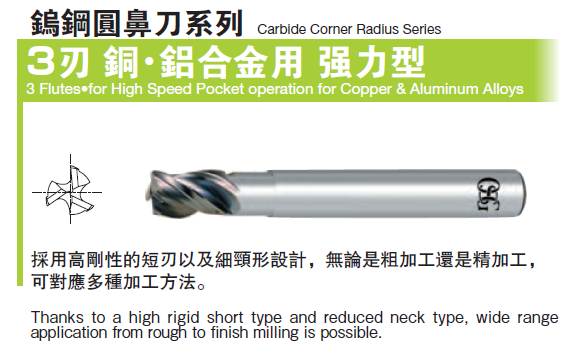 三刃鎢鋼圓鼻刀-銅鋁合金用強力型