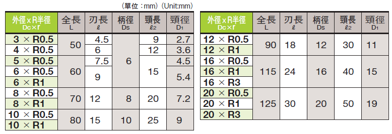 三刃鎢鋼圓鼻刀-銅鋁合金用強力型 M3*R0.5 ~ M20*R3