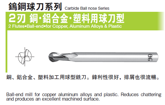 二刃鎢鋼球刀-銅鋁合金塑膠用球刀型