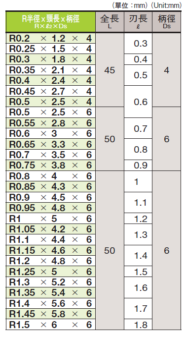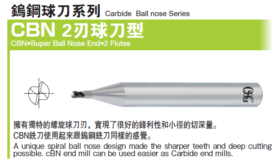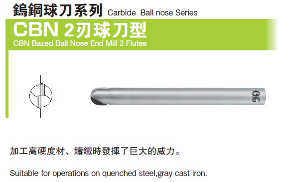 二刃鎢鋼球刀-CBN球刀型 R3*6 ~ R6*12 R0.2*1.2*4 ~ R1.5*6*6
