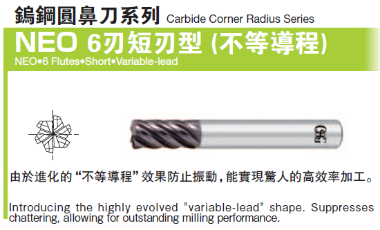 鎢鋼圓鼻刀-NEO6刃短刃型