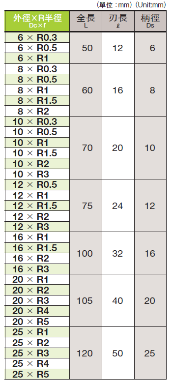 鎢鋼圓鼻刀-NEO6刃短刃型 M6*R0.3 ~ M25*R5