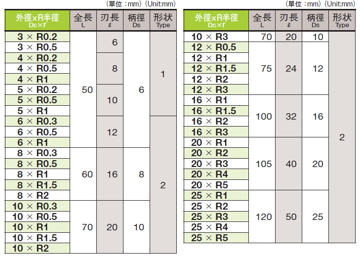 四刃鎢鋼圓鼻刀-NEO短刃型 M3*R0.2 ~ M25*R5