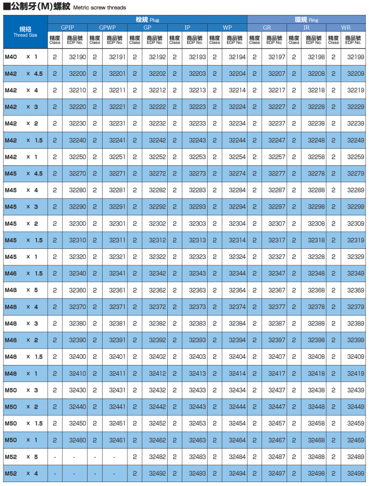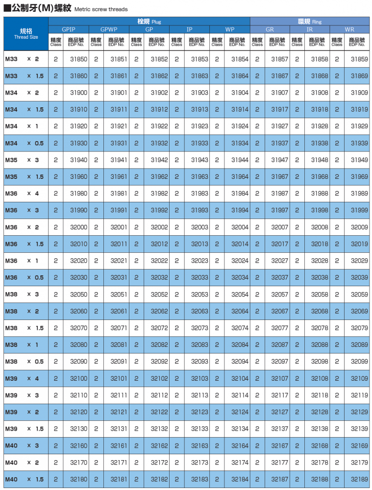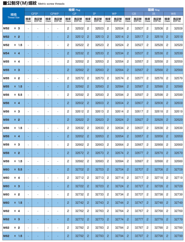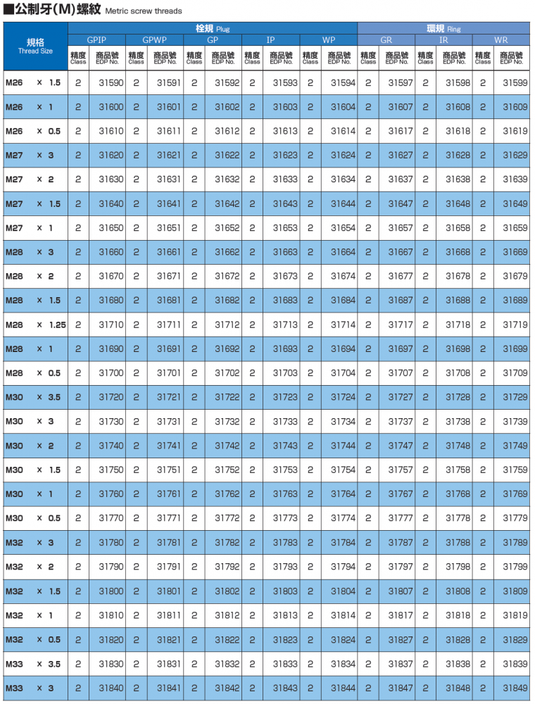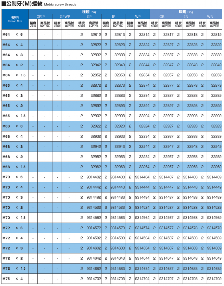 螺紋用限界量規 M26*1.5 ~ M75*4